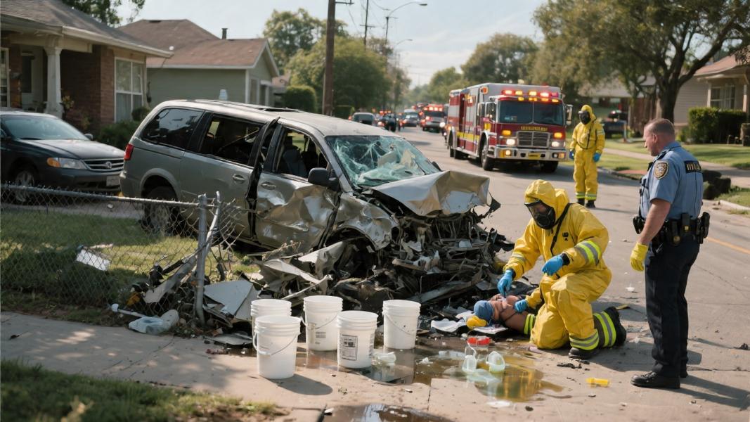 Two men are dead and a Fort Worth neighborhood was thrown into chaos Thursday after a minivan packed with nearly 500 pounds of liquid methamphetamine crashed into a parked car — triggering a hazmat emergency, a federal drug investigation, and a lot of unanswered questions.