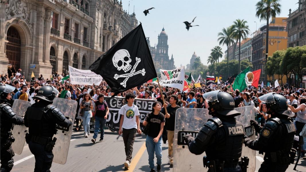 Thousands of Gen Z protesters clashed with police outside Mexico City’s National Palace last week, as a social media-driven movement against cartel violence and government security policies erupted into chaos. What began as an online call to action quickly transformed into street confrontations, with demonstrators wielding the pirate flag from the anime “One Piece” as their unlikely symbol of resistance.