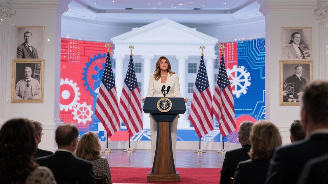 Mrs. Trump’s speech wove together themes of personal ambition and public good, positioning individual achievement as essential to societal progress. “Individual productivity is not selfish, it’s the heartbeat of civilization,” she declared to attendees, framing creative pursuits as patriotic contributions.