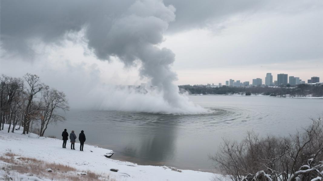 The dramatic vortex of swirling mist appeared over the lake starting January 23, 2026, as temperatures plummeted and snow blanketed the region with accumulations ranging from 1 to 5 inches across affected cities. The spectacle quickly became a social media sensation among locals brave enough to venture outside in the frigid conditions.