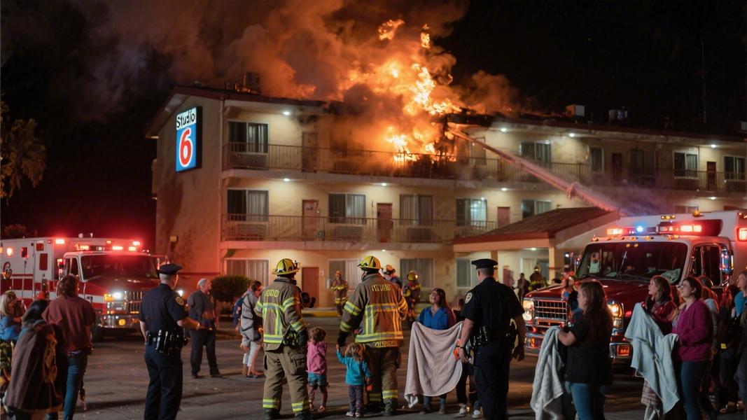 A fast-moving fire tore through a Studio 6 motel late Thursday afternoon, leaving roughly 150 residents without a place to sleep and sending two police officers to the hospital — a chaotic scene that raised urgent questions about safety conditions at extended-stay properties housing some of the region’s most vulnerable residents.