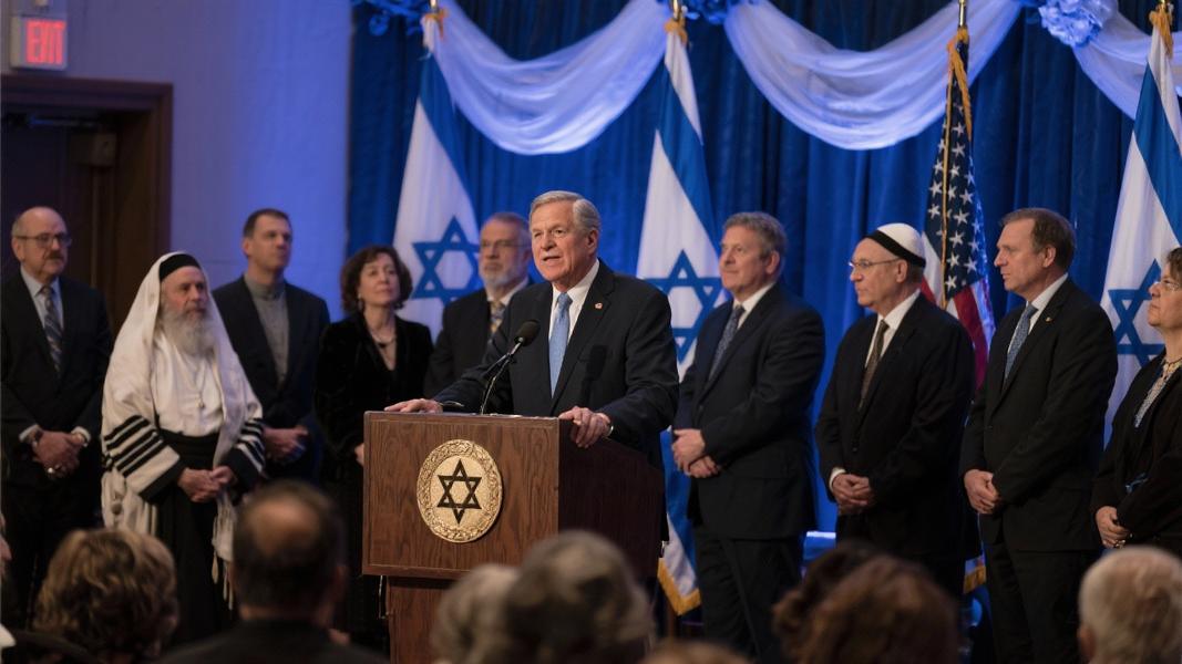 “No one has responded with the grace of God as effectively time and time again as the people of Israel,” Abbott said during the somber ceremony. “We pray every day that every hostage is returned to their families who have waited far too long.”