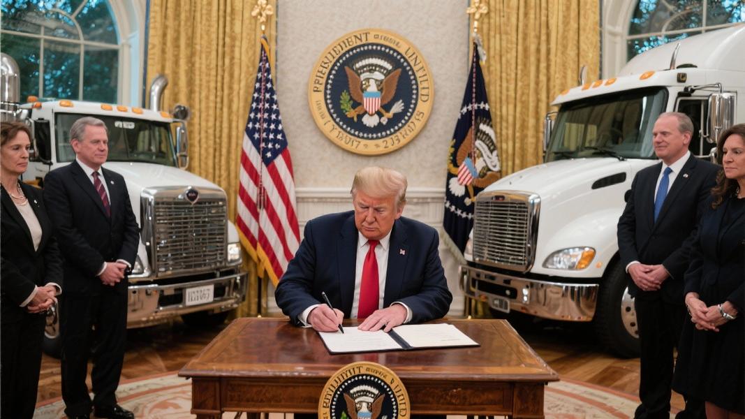 President Trump has promised to “protect our Great Heavy Truck Manufacturers from unfair outside competition” and ensure companies like Peterbilt, Kenworth, Freightliner, and Mack Trucks “will be protected from the onslaught of outside interruptions.”