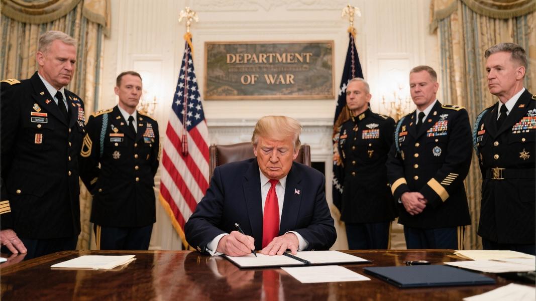 President Donald Trump signed his 200th executive order on Thursday, officially restoring the historic name “Department of War” as a secondary title for the Department of Defense — a move that signals a more aggressive military posture in his second term.