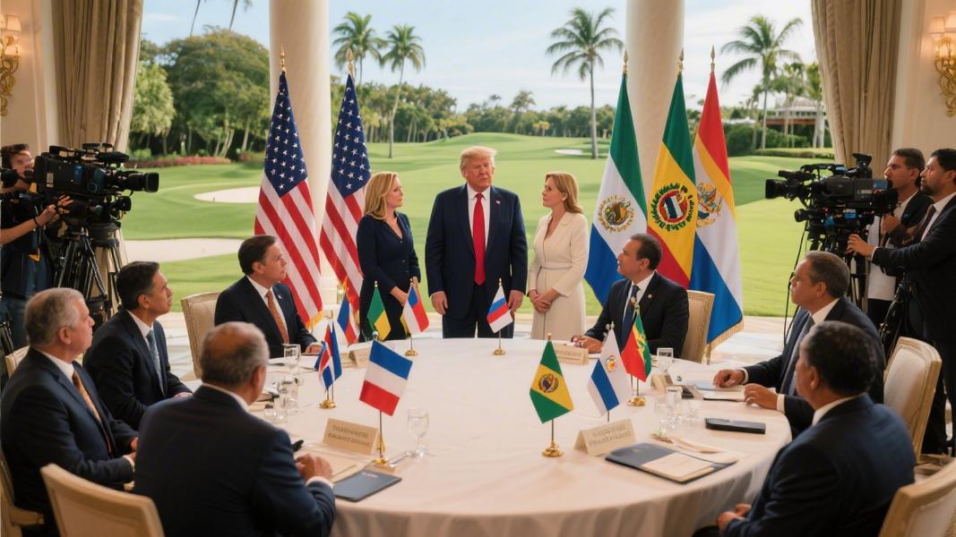 President Trump turned his Doral golf resort into a geopolitical stage Saturday, hosting a dozen Latin American leaders for what the White House is billing as a historic security summit — and announcing a sweeping new Western Hemisphere initiative called the Shield of the Americas.